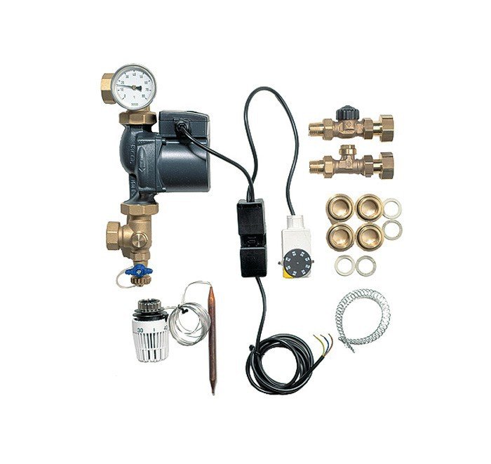 Группа автономной циркуляции FWR легко монтируется на коллектор и обеспечивает удобную регулировку тепловой мощности систем напольного отопления до 8-10 кВт.