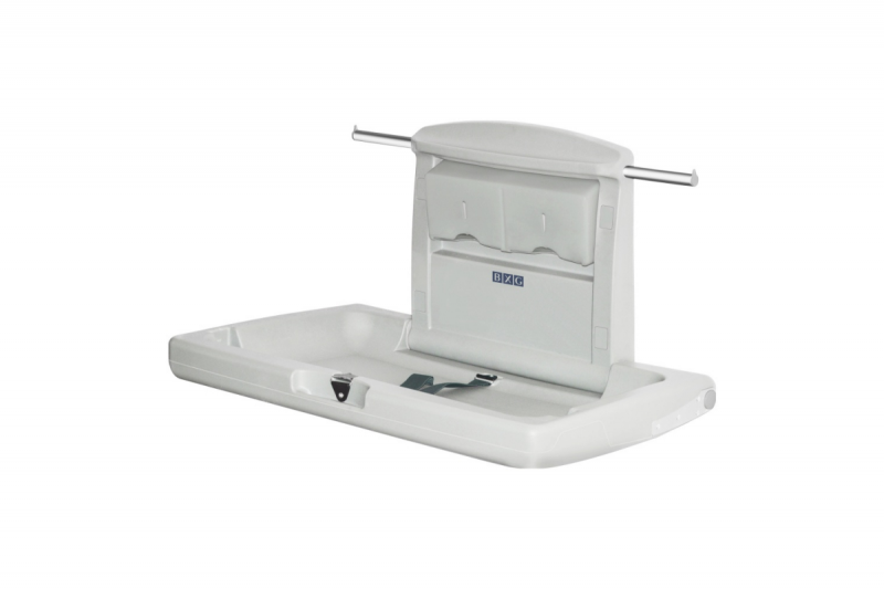 BXG-BS1 - раскладной пеленальный стол для общественных мест. Устанавливается в комнатах матери и ребенка аэропортов, торговых центров и т.д. Крепится на стену, (крепеж в комплекте). Фиксируется в закрытом и открытом положении. Газовый амортизатор позволяет плавно открыть и закрыть столик