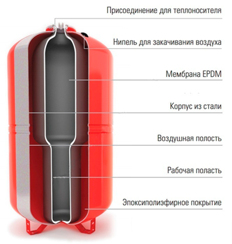 Профессиональный мембранный бак повышенной мощности для крупных систем отопления, предназначенный для компенсации температурного расширения теплоносителя и поддержания стабильного давления в системе.