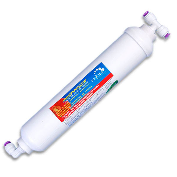Сменный модуль минерализатора Гейзер B (RO) призван обогатить отфильтрованную через обратноосмотическую мембрану воду полезными микроэлементами и минеральными солями. Применяется в системах обратного осмоса Гейзер для придания воде полезных свойств и приятного вкуса, так как вода, прошедшая через обратноосмотическую мембрану близка к дистиллированной. Насыщает воду такими элементами:
